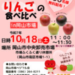 - りんご食べ比べ「おいしいりんごを食べてみられ~」を開催します!行事名 「おいしいりんごを食べてみられ~」 日 時 令和7年10月18日(土)11:00~11:30※300食… 続きを読む: りんご食べ比べ「おいしいりんごを食べてみられ~」を開催します!